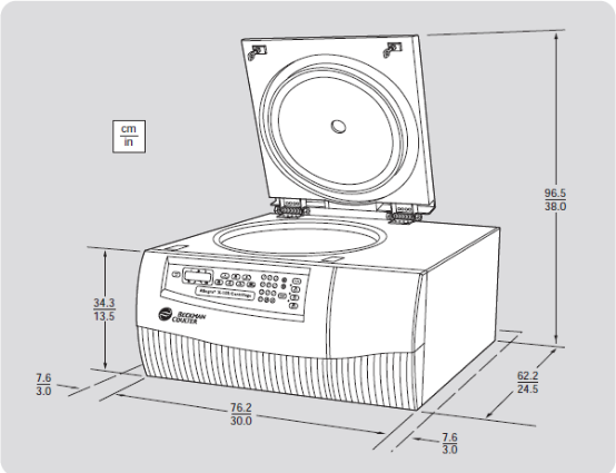 · 離心機(jī)運(yùn)行時(shí)周圍需留出 7.6-cm (3- 英寸)間隙空間。在操作過(guò)程中,如果需要調(diào)整