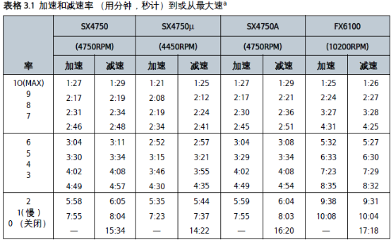 轉(zhuǎn)子會(huì)以**大速率加速**設(shè)置轉(zhuǎn)速,短暫維持運(yùn)行(一旦按下鍵)。松開鍵時(shí),則啟動(dòng)**大減速率。 |