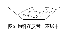轉載點處物料的落料位置對皮帶的跑偏有非常大的影響,尤其在兩條皮帶機在水平面的投影成垂直時影響更大。通常應當考慮轉載點處上下兩條皮帶機的相對高度。相對高度越低,物料的水平速度分量越大,對下層皮帶的側向沖擊也越大,同時物料也很難居中。使在皮帶橫斷面上的物料偏斜,**終導致皮帶跑偏。如果物料偏到右側,則皮帶向左側跑偏,反之亦然。在設計過程中應盡可能地加大兩條皮帶機的相對高度。在受空間限制的移動散料運輸機械的上下漏斗、導料槽等件的形式與尺寸更應認真考慮。一般導料槽的的寬度應為皮帶寬度的三分之二左右比較合適。為減少或避免皮帶跑偏可增加擋料板阻擋物料,改變物料的下落方向和位置。 在皮帶上的物料不居中見圖3