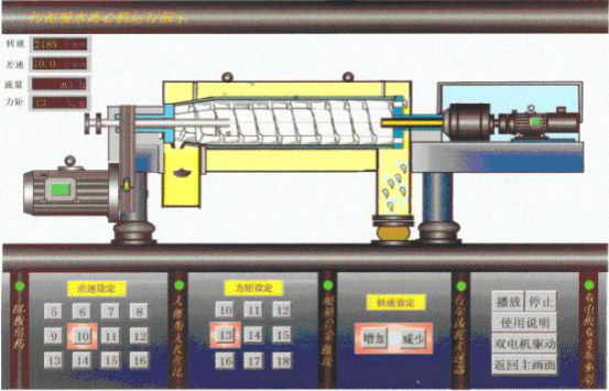 5.電控系統(tǒng)(PLC+液晶屏全自動(dòng)控制,動(dòng)態(tài)畫面顯示):由臥螺主機(jī)、進(jìn)料泵、加藥泵、稀釋水泵、PLC控制及相關(guān)電氣元件控制箱及液晶觸摸屏組成。