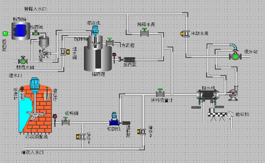 (3)連接,就是畫面上的圖素以怎樣的動(dòng)畫來模擬現(xiàn)場(chǎng)設(shè)備的運(yùn)行,以及怎樣讓操作者輸入控制設(shè)備的指令。