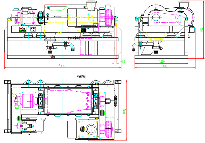 1.shou先檢查主傳動和輔傳動旋轉方向是否正確,然后檢查傳動膠帶是否松弛、偶合器油是否不足,并做相應的處理。必要時測量轉鼓轉速; 2.若以上均正常,可檢查泥漿粘度是否過高、固相含量是否過少、固相液相密度差是否太小、微粒是否太細等; 3.若使用年限較長,且固相排出量逐漸減少,而其它情況均正常,可以初步判斷螺旋推料器葉片嚴重磨損,應更換或大修螺旋推料器。 |