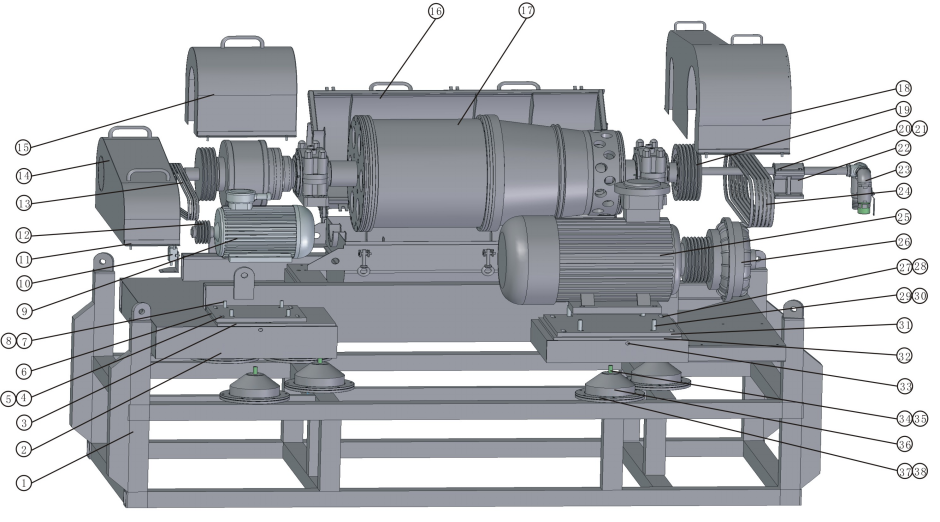 1.每次工作完畢后必須徹底清洗轉鼓,在冬季,還必須通過放水螺孔徹底放空轉鼓內的積水,以免結冰; 2.嚴格按照規范啟動機器,調節月牙板時必須同時一致調節; 3.按規定潤滑軸承,經常監測軸承座的溫升情況。 |