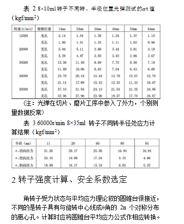 光彈實驗測量結果與浙大力學系用軸對稱有限元計算結果基本一致。通過轉子實體的電測實驗,我們進一步論證了轉子與其它旋轉運動的構件一樣,它的應變