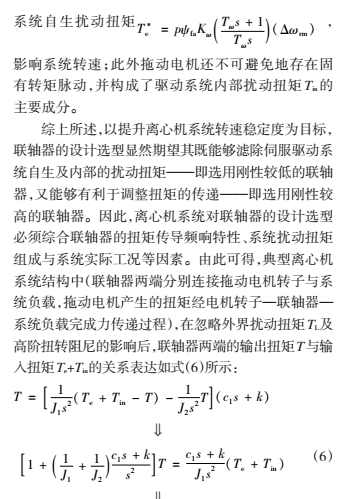 不同離心機系統對動穩態調速性能的需求是不同的,因此針對離心機轉速穩定度的聯軸器設計選型,必須綜合考慮離心機系統結構、系統擾動扭矩組成等因素。在確定離心機系統所要求的調速響應頻