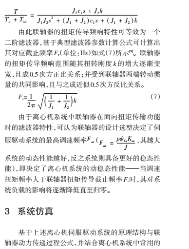 率之后,方可基于聯軸器的二階濾波器特征對其技術指標進行設計,使之具備合適的扭矩傳導截止頻率。